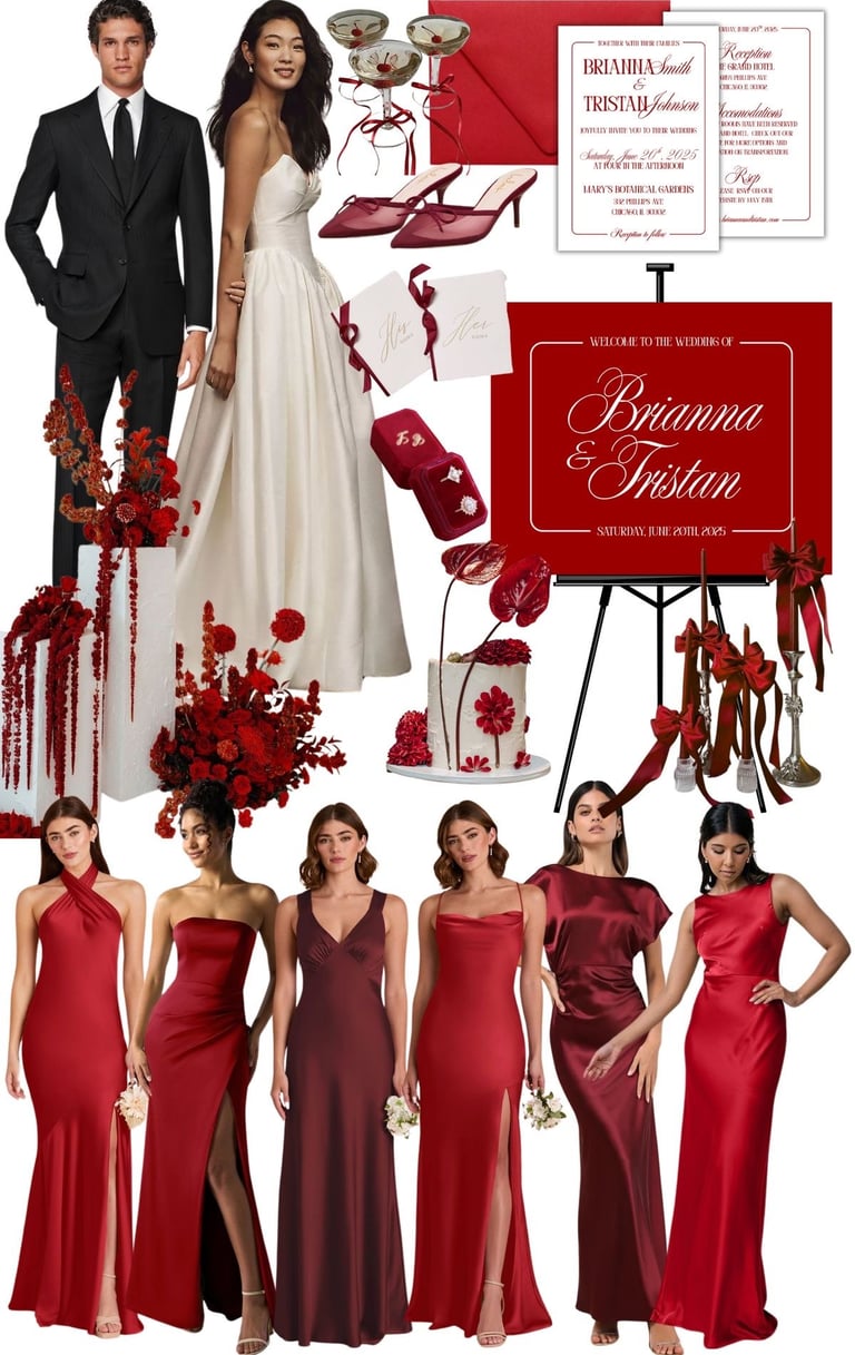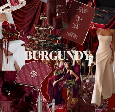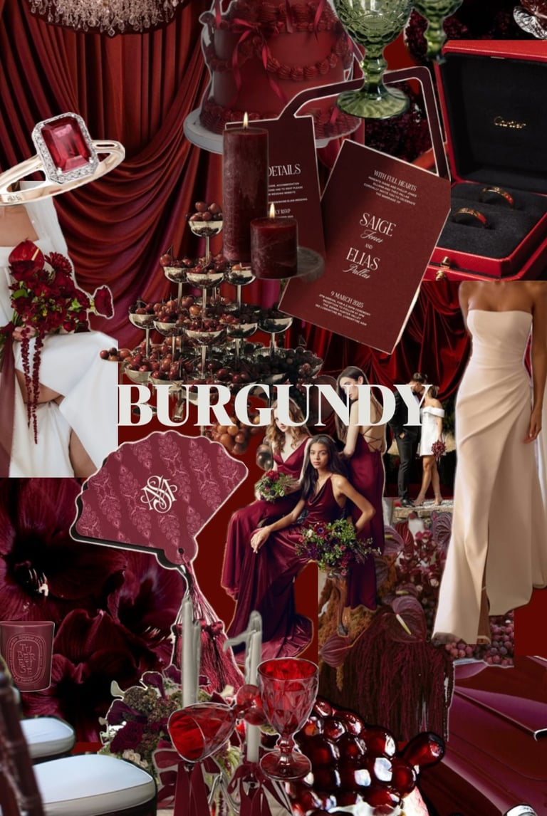 Un univers imaginé autour de nuances bourgogne, mêlant élégance florale et raffinement, pour crée une atmosphère inoubliable.